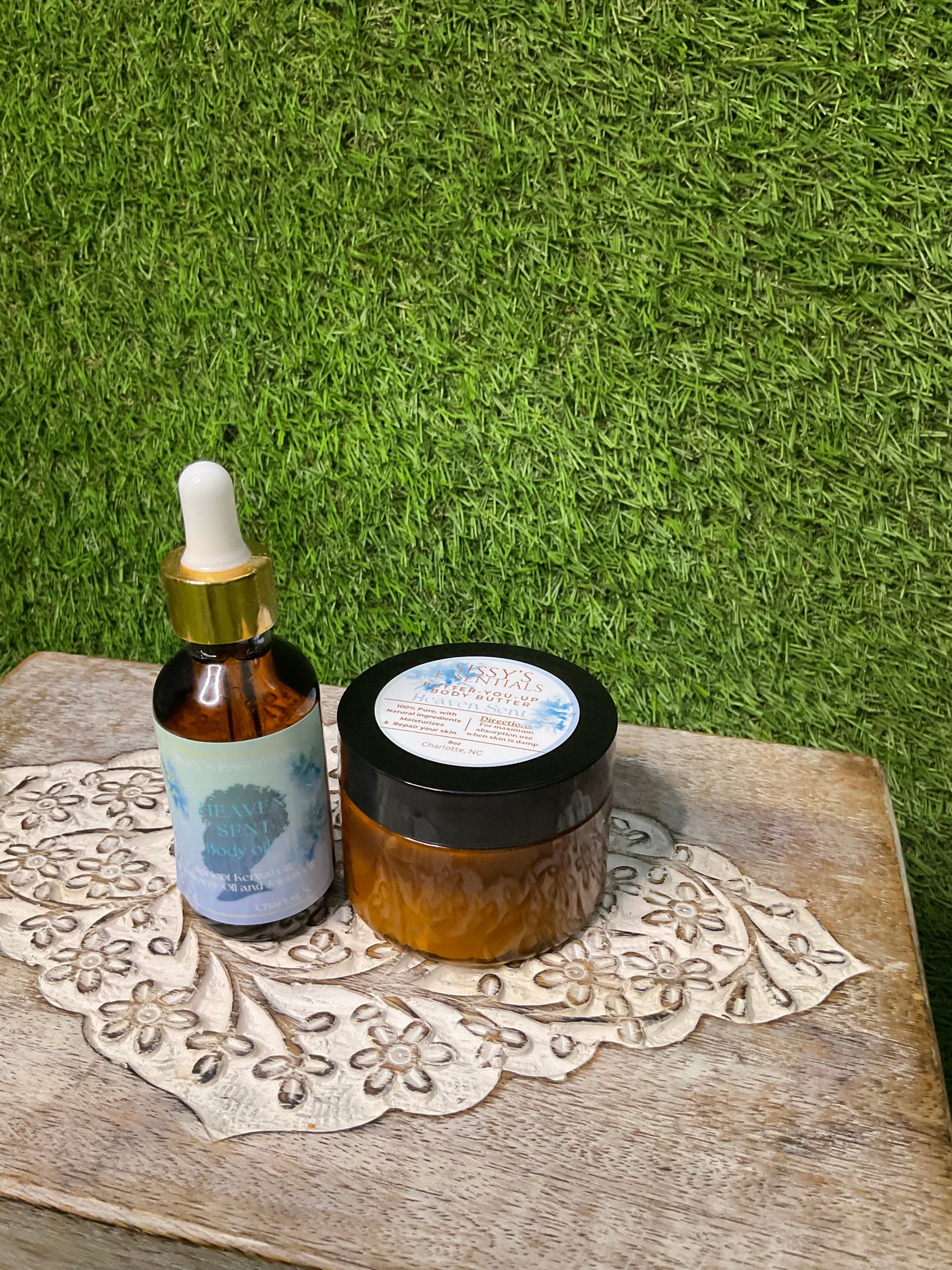 "Heaven Sent" Body Butter is a Blend of Honey Vanilla, Amber and Sandalwood scent that's more on the light side.
