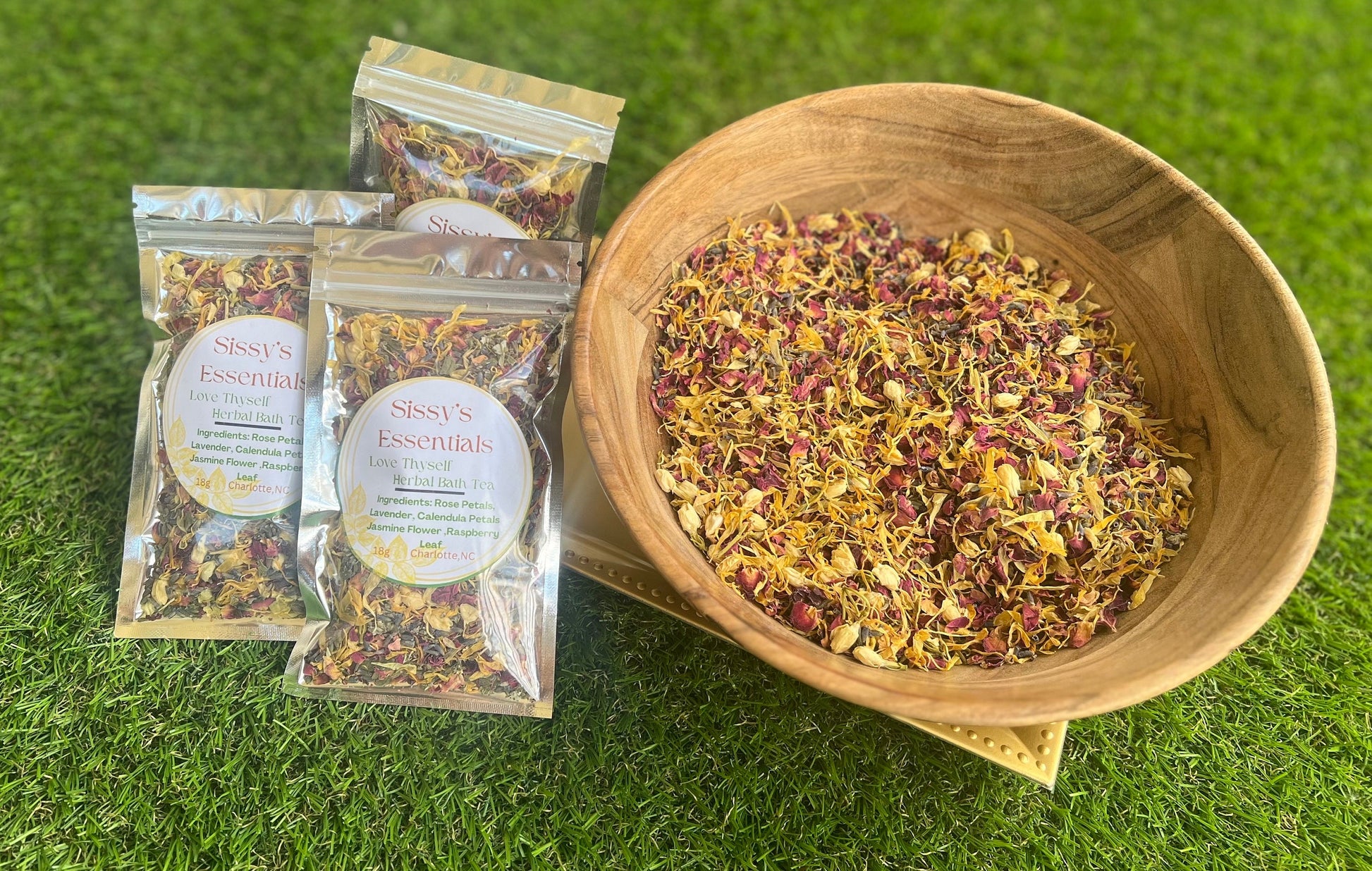Love Thyself is an herbal medley of ingredients which is both drinkable and compatible with a relaxing bath. Designed to be consumed either in tea or through the skin in a bath for therapeutic effects.
