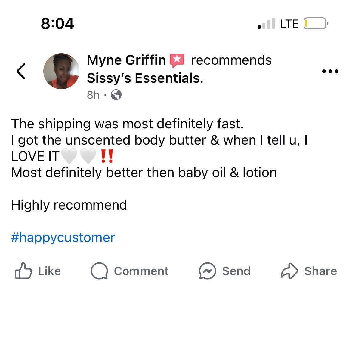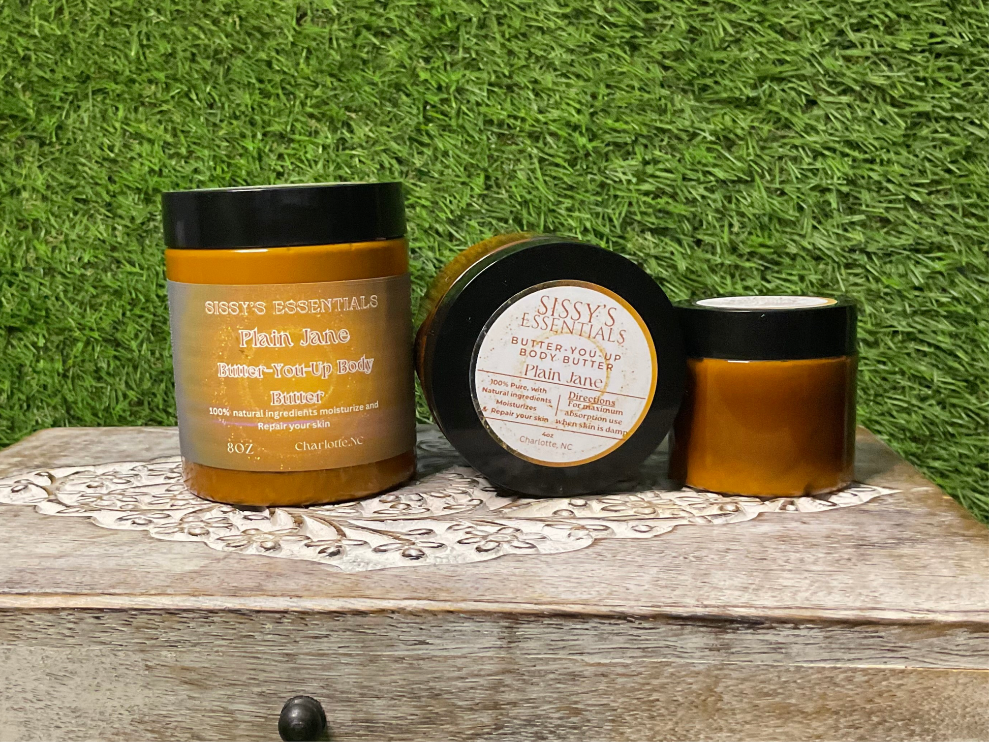 Sissy's Essentials Butter-You-Up Body Butter is made with 100% Natural butter and oils to give the most moisture and hydration without leaving you greasy.