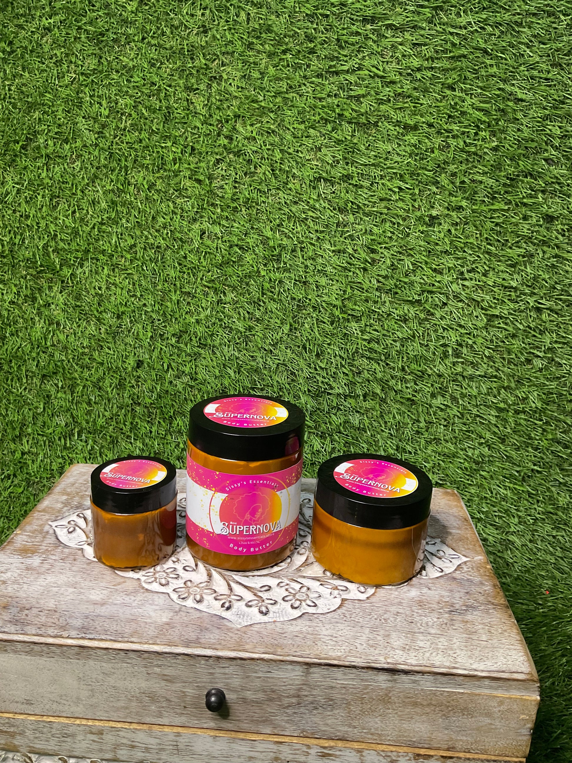 "Supernova Body Butter is made with 100% natural butter and oils blended to give the most moisture and hydration without leaving your skin oily or greasy.
